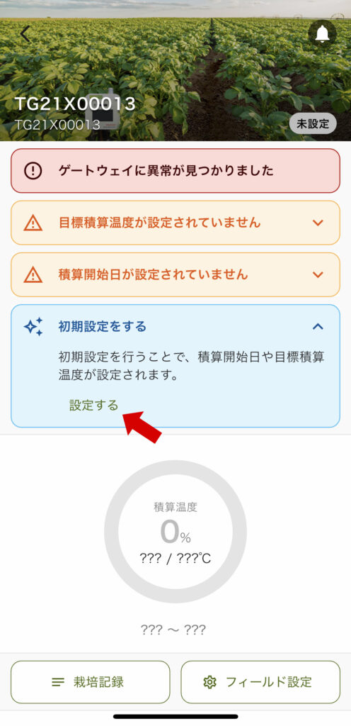 フィールド詳細画面の中にある赤矢印箇所「設定する」をタップします。